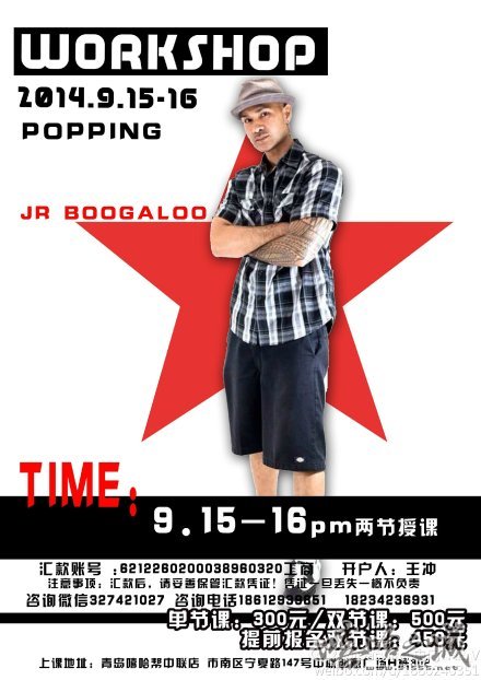 美国的JRBOOGALOO降临山东青岛进行授课 townson 街舞11年前626K 重量级授课,来自美国的JRBOOGALOO降临山东青岛进行为期两天的workshop,话不多说看图片介绍.学习的好机会,希望大家积极。 培训街舞培训本文原创,作者:townson,其版权均为townson所有。如需转载,请注明出处:https://www.xihachina.com/1220.html