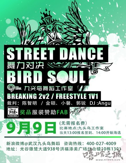 【武汉街舞赛事】9月9日 Street Dance 舞力对决 Bird Soul