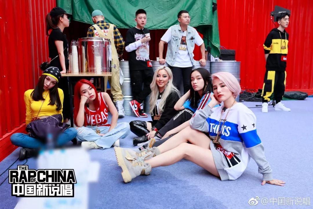 坐在地上的是中国的一线女rapper,万妮达、莫安琪、刘柏辛、呆宝静。去年只有VAVA算一线,今年的女rapper阵营比去年强太多。