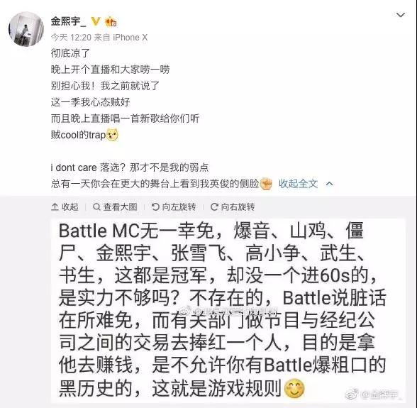 其中,参加了海选的battle MC 金熙宇发布了一则消息: