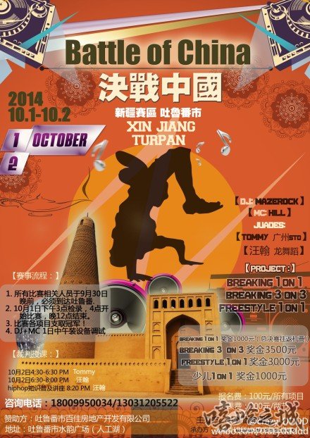 Battle Of China决战中国新疆赛区10月1日开赛 townson 街舞11年前554.84K 2014年10月1日至10月2日Battle Of China决战中国新疆赛区 吐鲁番市 街舞大赛街舞比赛街舞精英挑战赛本文原创,作者:townson,其版权均为townson所有。如需转载,请注明出处:https://www.xihachina.com/1275.html
