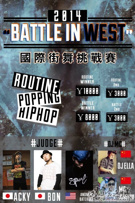一年一度西南最大赛事BIW又开始了!今年我们邀请到了来自日本的ACKY与BON担任popping与hiphop裁判!同时我们增加了齐舞环节,请来了美国编舞大师Andrew Baterina!最高奖金达到10000!还在等什么!搞快点抓紧时间排齐舞练舞哟!报名授课请猛戳大图!