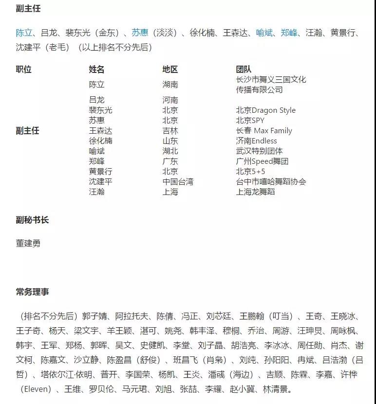 既然前面说到了街舞委员会理事会,那么就先来说一说理事会成员吧。
