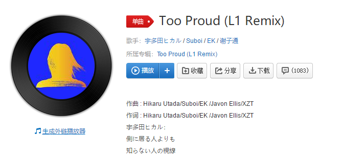 近日,等待已久的宇多田光featuring直火帮xzt,Suboi,EK的Too Proud(L1 Remix)已经释出。