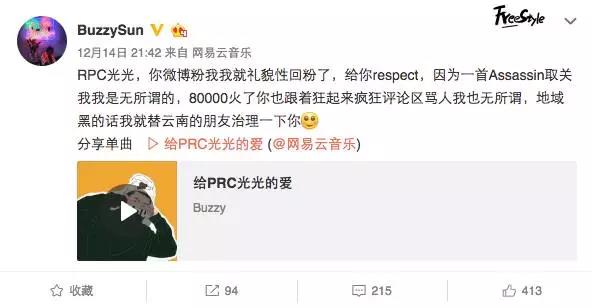 2018年初,说唱音乐在国内面临着一场危机,在舆论上被大众所误解了,Buzzy还发出过一首《可能黑人文化还真不是你想的那样》。(这首可以算是diss也可以算不上)