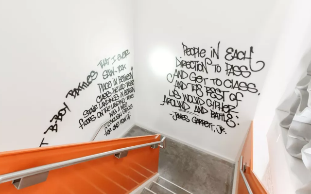 ↗Close to the Edge: The Birth of Hip-Hop Architecture展览的涂鸦是Chico的作品(图片来源:Erik Bardin/ Center for Architecture)