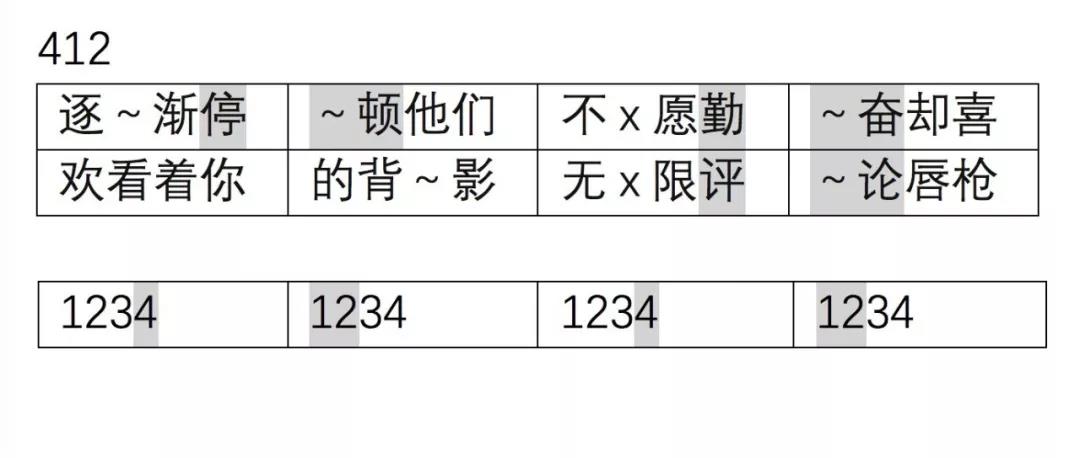 例如“毒~箭”是在123,“不~变”是在341(本拍的34和下一拍的1)。