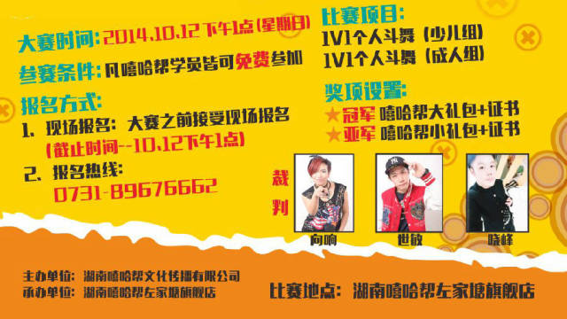 大赛地点:湖南嘻哈帮左家塘旗舰店