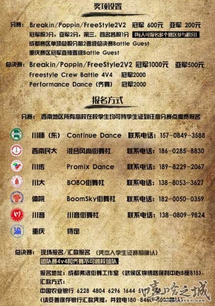 10月12日 后起之秀 西南高校街舞联赛 Vol.1 townson 街舞11年前578.42K 街舞大赛本文原创,作者:townson,其版权均为townson所有。如需转载,请注明出处:https://www.xihachina.com/1552.html