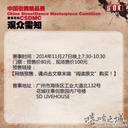 11月27日 2014中国街舞精品赛CSDMC赛事详情