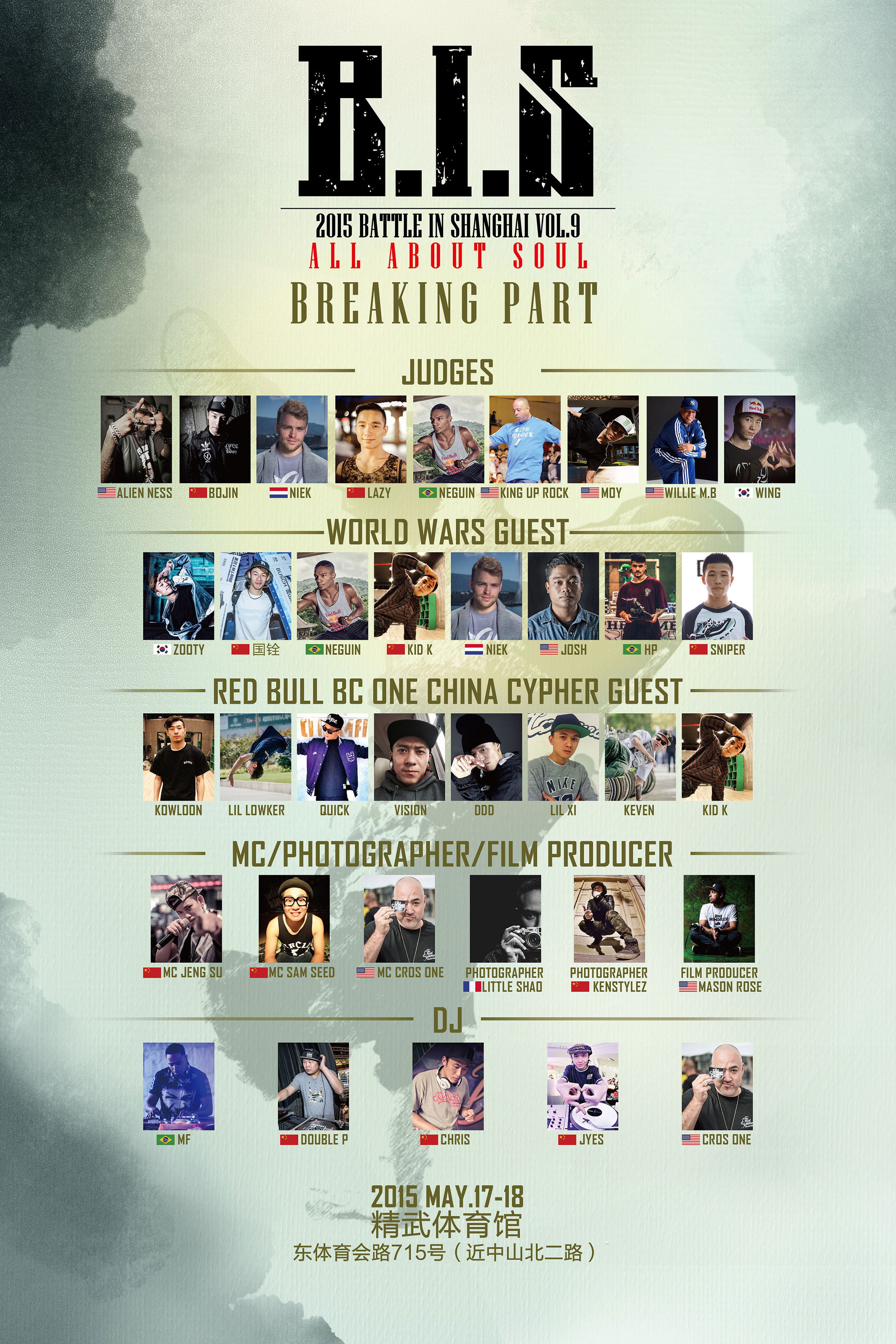 2015BIS裁判、GUEST及RED BULL BC ONE 8位种子选手公布