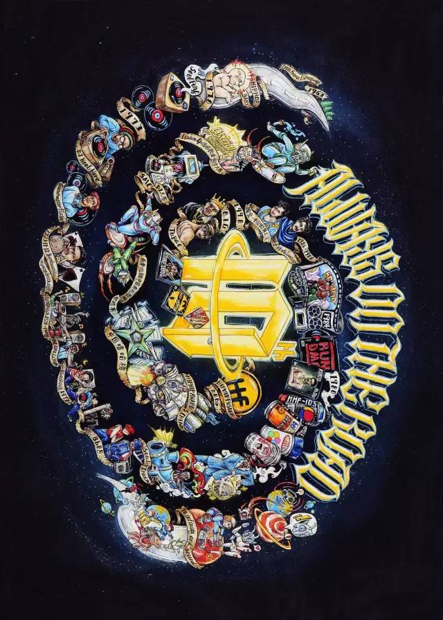 眼尖的HIPHOP爱好者肯定能认出MV的一些,整个插画融合在HIPHOP这个宇宙中的浩瀚银河里,从过去 到现在 再到未来 ,是历史演变,也 是一路前行, 不会停止的ALWAYS ON THE ROAD 精 神!