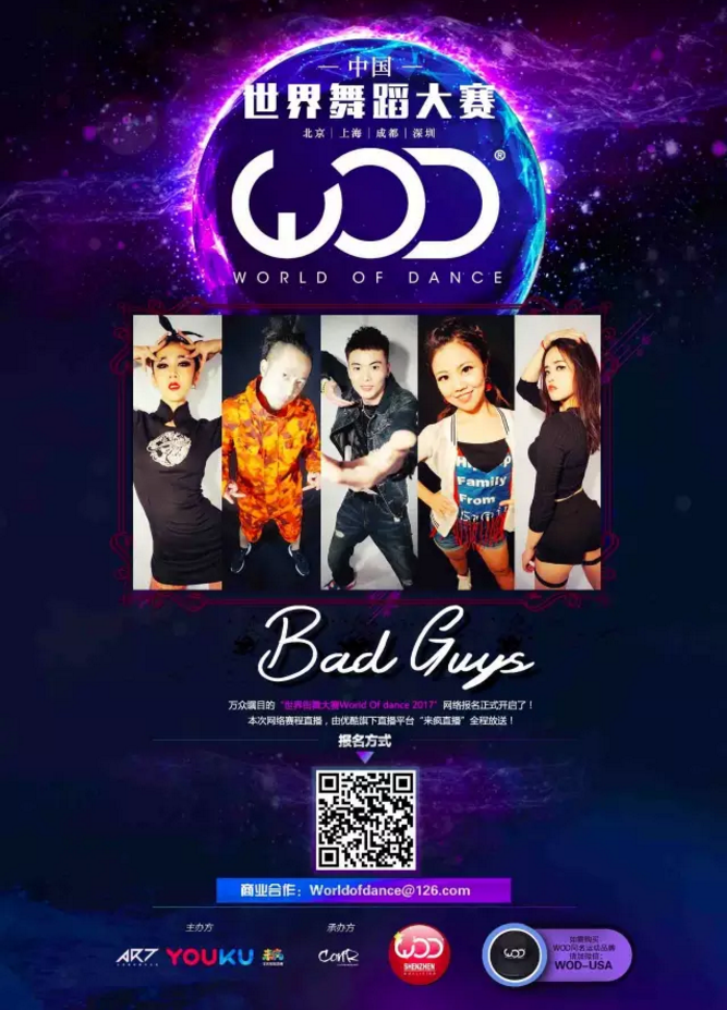 Bad Guys 来自深圳Bad Guys Dance Studio,这是深圳龙岗第一家以Hiphop、Jazz、Popping为主要风格的舞团。2015年由队长张雷和JoJo创立以来,一直走心推广嘻哈文化,并担当了2015年及2016年《嘻哈全明星舞会》的表演嘉宾。以“Bad Guys”为名,是因为很多人戴有色眼镜看待街舞舞者,认为跳街舞的都是坏孩子,而2014-2015年的深圳龙岗正是如此;起名为“Bad Guys”,是刻意而为之,旨在用努力来证明街舞的舞者都是好样的,街舞给带来的是快乐、是健康、是正能量!”舞蹈之路,我们一直在摸索前行,不忘初心。