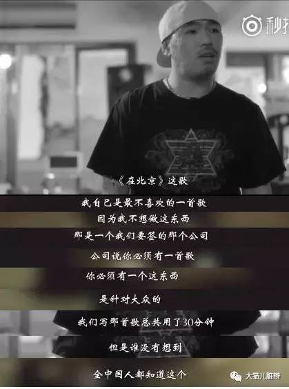在我印象里,最早听过的说唱歌曲就是《在北京》。这首歌还是在我哥电脑里听见的,内时候还小,大点儿我才知道,当时我哥电脑里播的都是封面上印着老黑的扎眼儿盘,但是当时我一句都没听懂,也不爱听,直到放了《在北京》。当时就觉得真够意思。按赵老板的话说:听Mc hotdog内感觉像是吃麦当劳肯德基,好吃是好吃,但是总觉得差了点什么;但是听隐藏就像是吃炒肝卤煮,接地气,里边的歌词写的就是北京人的生活,这是属于北京的东西,是我们一直想听到的。