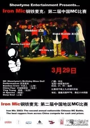 但是为什么我还是一直要说Iron Mic这个比赛,因为我要强调王波对北京说唱作出的贡献!因为有了王波的三连冠,所以在2006年的Iron Mic决赛舞台上,有了几位北京的Mc的身影:贾伟、小老虎、张睿、昊然、孟国栋。这几位都是北京说唱圈的大神。贾伟、孟国栋、陈昊然组成了阴三儿,阴三儿还用我说吗?!